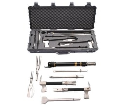 破拆工具可以完成可完成撬、拧、凿、切割、劈砍、拔、敲、撕、冲等手动破拆功能于一体,冲击头采用高强度工具钢,可破门撬锁、穿透砖墙、金属片及众多复合材料。携带方便;操作省时省力,尤其适合在狭窄空间或黑暗条件下使用;防滑设计的手柄可伸缩,工具头可快速拆卸更换实现多种用途。是紧急救援必备的破拆工具组。各部件:采用合金工具钢制造。外表处理:合金钢工具部份电镀处理。